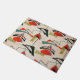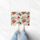 Cada dia pode ser uma explosão do passado com esta esteira de porta inspirada moderna do meio século. A parte dianteira e as características que de design traseiras uma réplica de um tecido móvel atômico do vintage modela. O fundo é ecru com formas azuis, alaranjadas, verdes e pretas da arte moderna. Esta é a esteira de porta ideal para apartamentos, casas ou RVs com uma sensação do vintage.