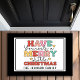 Toque na temporada de festas com esta porta personalizável que apresenta a tradicional tipografia retrô-estilo que diz, "Tenha um pequeno Natal Feliz", em tons brilhantes de vermelho, verde, rosa e laranja. Estrelas amarelas lúcidas soam esta design, acrescentando uma vibração divertida à sua porta. Personalize esta nostálgica porta do estilo 1960, adicionando seu nome de família para criar boas vindas à sua casa. Faz um presente de excelente para novos proprietários.