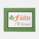 Fáilte (Irlandês/Gaélico) quer dizer bem-vindo! Texto, estilo celta shamrock e cores da bandeira da Irlanda.