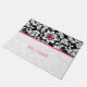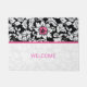 Cor damasco floral branca e negra elegante com faixa e flor rosa. Modelo de porta personalizável