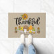 Uma família gnoma bonita com girassóis e o wordart "agradecido". Belo outono/outono e decoração de casa de Ação de Graças.