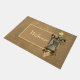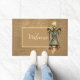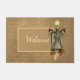 Vintage parece vitoriana / fantasia Steampunk, mulher busta no colete do rico com asas de borboletas, buquê inferior e lâmpada no fundo da efêmera com um texto personalizável de "Bem-vindo". Perfeito para festas de chá Steampunk, eventos, expos, lojas de roupas de vintagem e muito mais
