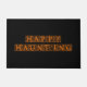 Texto decorativo "Feliz Assombramento" em letras laranja vibrantes, um design humorístico e sofisticado para um Halloween assombroso.