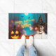 O design do Halloween apresenta um recorte de fotos de mulheres negras vintages com chapéu de bruxa rico, mariposa e corvo, jack o' lanterna e "Bruxas Feliz de Halloween" em texto neonês