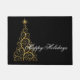 Porta mostrada com fundo preto e uma árvore de Natal festiva feita de impressão de espiral de Ouro.