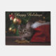 Este adorável gato de cinza está pronto para lançar na sua família para o Natal. Apresentando "Felizes Feriados" esta porta apresenta um gato adorável debaixo de uma árvore de Natal. Aproveite este tapete de porta hoje. Art by: Myshun