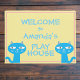 Bem-vindos à porta da Playhouse com nome(s) personalizado(s) e ilustrações de gatos divertidos para a casa de brincadeira de crianças. Duas caras sorridentes de gato em azul e rosa. Personalize o nome e mude para a cor de fundo, se desejar. decoração de playhouse de excelente para crianças que amam gatos.