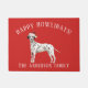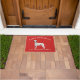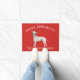 Adorável portaria de Natal com um Dalmaciano vestindo um chapéu de santa em um fundo vermelho festivo.