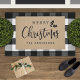 Adicione um toque de elegância à sua decoração da varanda de férias com este design de tipografia de "Feliz Natal" na moda. Inclui o moderno roteiro de caligrafia escrevendo com texto personalizado que pode ser personalizado com o monograma de sobrenome de sua família, juntamente com um sotaque festivo de folhas e bagas sagradas. Inclui um fundo rústico neutro do que texturizado.