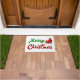 Porta com Feliz Natal em texto verde e vermelho 3D e trenó de Papai noel. Disponível em vários tamanhos.