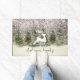 Feliz rena feliz do Natal na fazenda da floresta. Um design de Natal complexado e perfeito, um porteiro personalizado. A design começa com uma foto de burlap no fundo, o resto da design é imagem gráfica. Um design que dá tanto sentimento de Natal sob o tempo de nevar na floresta.