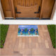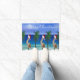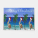 Papais noeis pelicanos com palmeiras de Natal em Luzes de Férias na orla do tapete litorâneo da praia com minha arte. Disponível em vários tamanhos para dentro ou para o exterior.