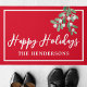 Bem-vindos à família e amigos com esta porta de Feriados Felizes. É decorado com água embebida em fundo vermelho. Facilmente personalizável. Use a Ferramenta Design para alterar o tamanho, o estilo ou a cor do texto. À medida que criamos a nossa trabalho de arte, não encontraremos estas imagens exatas de outros designers. Original Watercolor © Michele Davies.