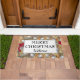 Wreath FesNatal Wreath WELCOME Doormat, mostrando um fundo de bolhas festivas e coroa de zumbis. O texto diz MERRY CHRISTMAS e WELCOME, ambos são PERSONALIZÁVEIS para que você possa alterar o texto de acordo com suas necessidades, por exemplo, adicionar nome de família, lema de família ou citação inspiradora. Outras versões de BOAS-VINDAS estão disponíveis na WELCOME TO OUR HOME Collection (Bem-VINDO À NOSSA coleção DOMÉSTICA) por Berean Design.