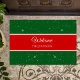 Adicione um toque pessoal ao Natal da sua família com este lindo tapete de sobrenome personalizado. O tapete apresenta um fundo verde festivo com flocos de neve brancos e neve. Em segundo plano há uma fita vermelha com o texto editável Welcome (Bem-vindo) e seu nome de família. Este tapete de porta adiciona um toque sazonal quente à sua casa e também faz um excelente personalizado para o aquecimento doméstico, aniversário, chá de panela, casamento, Natal ou outro presente de feriado.
