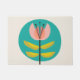 Um abstrato de arte de 1950 com uma flor rosa salmão com folhas verdes cartreusas contra um sol taruga, feito no estilo moderno do meio século.