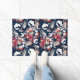 Tapete Flores brancas e vermelhas em azul.