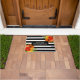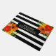 Listras geométricas brancas e pretas, de cor branca, com flores coloridas