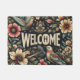 Esta é uma porta com fundo preto que tem flores e pássaros.