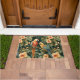Este tema tropical ou design de tapete apresenta flores tropicais exuberantes e dois papagaios, perfeito para sua casa tropical convidar convidados para entrar.