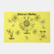 Três lindamente ilustradas flores em um pano de fundo amarelo macio. E borboletas azuis leves. Adicione suas próprias palavras para personalização.