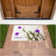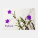 Flores roxas vivas se curvam na brisa na fotografia original de ZoeSPEAK nesta porta. As flores são petúnias mexicanas, florescendo sobre longos caules com folhas longas e finas verdes. Todas as formas fazem uma silhueta colorida contra o fundo pálido do stucco. Adicione uma alegria roxa natural ao seu mundo. Há um texto que diz "Bem-vindo". Este é definido para personalizar se desejar, ou excluir se preferir.