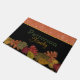 Adicione uma Queda colorida à sua porta frontal, com este tapete de porta personalizado. Gráficos de Folhas coloridas enfeitam o fundo do tapete da porta preta, com um padrão de folha laranja, através do topo. Personalize o texto verde e amarelo ouro para você mesmo ou como uma ideia de presente excelente para qualquer um.