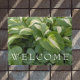 Uma porta decorativa, bem-vinda, que mostra uma foto de folhagem verde, foliar que inclui Hosta variegada e outras plantas folhosas. Um design floral adorável! Utilizar no interior ou em áreas de acesso cobertas. Selecione o tamanho da porta.