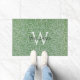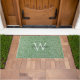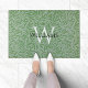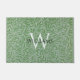 Um monograma - inicial branca grande sobreposta e nome personalizado em letras maiúsculas pretas menores - em um padrão de folhas de salgueiro verdes sobre um fundo de céu azul por William Morris (1834-1896) que agora é de domínio público.