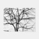 Uma foto de folhas, galhos e linhas de energia no outono. Imagem em preto e branco.