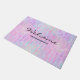 Uma porta de boas-vindas com um padrão de fundo abstrato. As aquarelas roxas e azuis cor-de-rosa formam este design artístico que apresenta formas retangulares verticais sobre um fundo malhado.