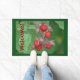 Este tapete de boas-vindas apresenta uma imagem única das framboesas selvagens ou das bagas de vinho. Colorida, única e convidativa.