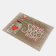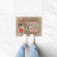 O frasco de pedreiro home doce Home e a esteira bem-vinda do coração com uma madeira rústica textured o fundo.