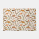 Quente outono, o padrão dos cogumelos, folhas, galhos e samambaias desenhados à mão, laranja, verde e castanho, num fundo de creme macio. Este é um padrão fixo. Você pode alterar o tamanho e a posição do padrão e adicionar seu próprio texto. Esta design corresponde à coleção Fall Fungi.