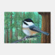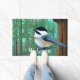 Um belo pictuesco Chickadee encravado entre os verdes.