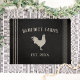 Bem-vindos convidados para a sua casa com esta encantadora casa rustica. O design personalizado apresenta o nome da sua família ou o nome da fazenda em caracteres neutros que não a letra, juntamente com o seu ano estabelecido e uma ilustração de lista. A faixa de cordas detalhando sobre um fundo preto rico completa a design.