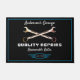 Qualquer garagem de nomes com chaves gráficas em fundo preto com borda azul. Use apenas a opção "personalizar este modelo" para alterar o texto. Script de slogan com qualquer data. Apenas escolha o tamanho.