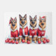 Noble and strong German Shepherds look festive and ready for the holiday season in their Christmas Santa outfits. A great design for GSD owners and service dog lovers.