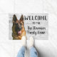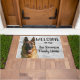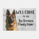 Bem-vindo à Página Inicial "Seu Nome Familiar", ou mude para a casa de campo. Um cão temeu um tapete de boas-vindas para a família que ama seu cachorro como parte de sua família. O design apresenta um lindo cão German shepherd. Personalize seu nome de família.