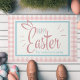Esta adorável porta de Páscoa apresenta um fundo de xadrez de gingham rosa e branco com uma escrita decorativa de Felz pascoa azul e rosa para bebês adornada com orelhas de coelho coelho. Personalize adicionando seu nome de família.