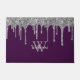 Aproveite esta elegante design com seu nome e monograma ou inicial com brilho cônico e cinza-prata pinga sobre fundo roxo profundo.