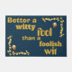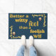 Bem-vindos convidados com um toque de elegância e sabedoria usando nosso tapete de porta 'Dourado no Azul'. Apresentando a citação do eterno "Melhor um tolo espirituoso do que um tolo tolo" em ouro luxuoso contra um sofisticado fundo azul, este tapete durável adiciona estilo e substância à sua porta. Que sirva como um lembrete diário para entrar com inteligência e deixar a loucura para trás.