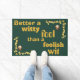 Bem-vindos convidados com um toque de elegância e sabedoria usando nosso tapete de porta 'Dourado em Verde'. Apresentando a citação do eterno "Melhor um tolo espirituoso do que um tolo tolo" em ouro luxuoso contra um sofisticado fundo verde, este tapete durável adiciona estilo e substância à sua porta. Que sirva como um lembrete diário para entrar com inteligência e deixar a loucura para trás.