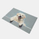 The soft icy gray-blue background enhances its snowy coat, creating a clean and serene look perfect for welcoming entryways. Designed with extra space at the top and bottom, it allows easy personalization with names, welcome messages, or custom text—making it ideal for unique dog-themed doormats and thoughtful gifts.