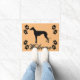 Silhueta de Greyhound com impressões de pata e texto "Bem-vindo" em preto.