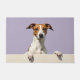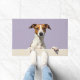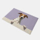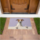 The soft lavender gray background adds a subtle and sophisticated touch, perfect for modern entryways. Designed with extra space at the top and bottom, it allows easy personalization with names, welcome messages, or custom text—making it ideal for unique dog-themed doormats and thoughtful gifts.