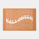 Este design de Halloween surpreendente apresenta uma repetição ousada e brincalhona da palavra "HALLOWEEN" em uma fonte ondulada e inspirada retroativamente. O texto é organizado em várias camadas, criando um padrão visual dinâmico que desenhar o visualizador. A palavra central é destacada em uma laranja sólida e vibrante, fazer que se destaca do texto ao redor, que é esboçado na mesma cor. A tipografia ondulada acrescenta um sentido de movimento e energia, capturando perfeitamente o espírito assustador e divertido do Halloween.