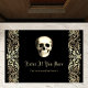 Abençoe seus convidados com esta porta de Dia das Bruxas assustadora! Na moda Gothic Glam Personalised Doormat para sua festa de Halloween. Design apresenta um crânio branco com ornamentos de ouro em fundo preto com "Enter If You Atare" em tipografia de estilo vintage. As fontes de estilo Vintage acrescentam uma aparência autêntica a este design de Glam Gótico. Este tapete está pronto para ser personalizado com o seu nome e a sua própria mensagem personalizada. A cor de fundo é personalizável.