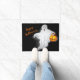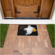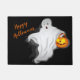 A porta do Dia das Bruxas é mostrada em preto com um impressão fantasma festivo. Personalize este tapete ou comprar como está. Imagem do stock