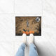 Skeleton dançando em um jardim de abóbora. Lua de cama com morcegos, aranha e um corvo sentados sobre uma abóbora.